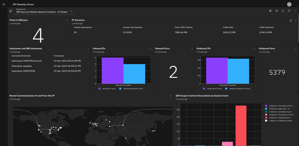 – Công cụ đánh giá lỗ hổng tích hợp, Qradar Vulnerability Manager (QVM) đặc biệt hiệu quả khi nó có thể tổng hợp dữ liệu lỗ hổng từ nhiều nguồn rộng lớn từ IBM cho đến từ bên thứ 3, bao gồm các công cụ quét ứng dụng Web, đánh giá lỗ hổng CSDL, các hệ thống quản trị đầu cuối bao gồm máy chủ (Endpoints) và các công nghệ khác. Đầu vào có thể là kết quả scans từ bên ngoài hay nội bộ từ hệ thống on-prem hay được hosted. QVM tương quan được với thông tin log/event và luồng có sẵn từ Qradar SIEM và cũng sẵn sàng tích hợp với hơn 20 công cụ quét khác nhau của bên thứ 3 như bên thứ 3 như third-party như Qualys, Rapid7, Tenable, Tripwire, AppScan,..