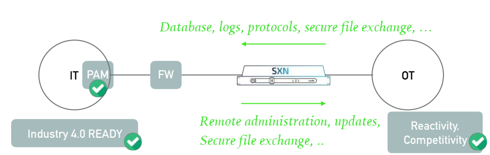 Seclab SXN là sản phẩm tốt nhất của giải pháp cổng bảo mật 2 chiều BSG (Bidirectional Security Gateways) đã được đưa vào sử dụng tại tập đoàn điện lực Pháp EDF bảo mật cho 58 nhà máy điện hạt nhân của EDF ở Châu Âu 6 năm trước khi thương mại hóa năm 2016 , bằng công nghệ độc quyền Electronic Airgap cứng hóa 100% bằng công nghệ lập trình bo mạch FPGA chưa có sản phẩm tương tự trên thị trường .